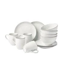 Das handgefertigte Frühstücks-Set besteht aus vier Frühstückstellern, vier Schalen und vier Tassen.