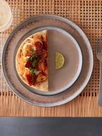Der Teller überzeugt durch gedeckte Farben, handgefertigten Look und schlichte Form. Ein einheitlich gedeckter Tisch wirkt einladend und zeigt Stilbewusstsein.